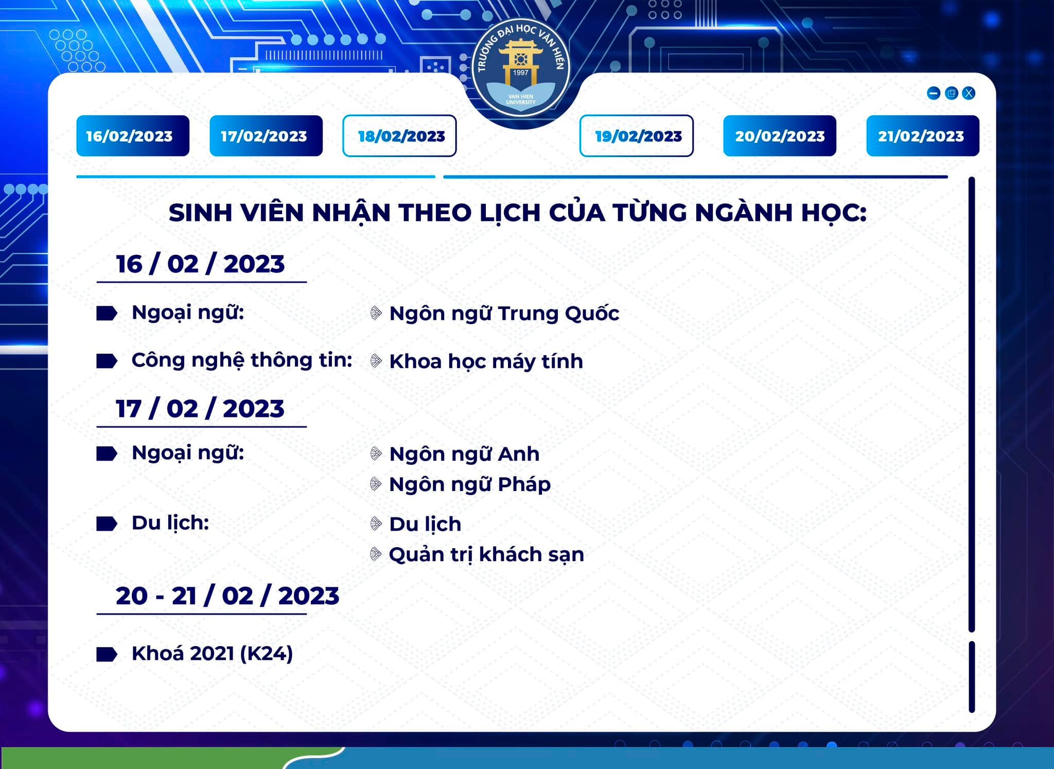 Thời gian nhận: Từ ngày 06/02/2023 đến ngày 21/02/2023 (Theo lịch từng Khoa)