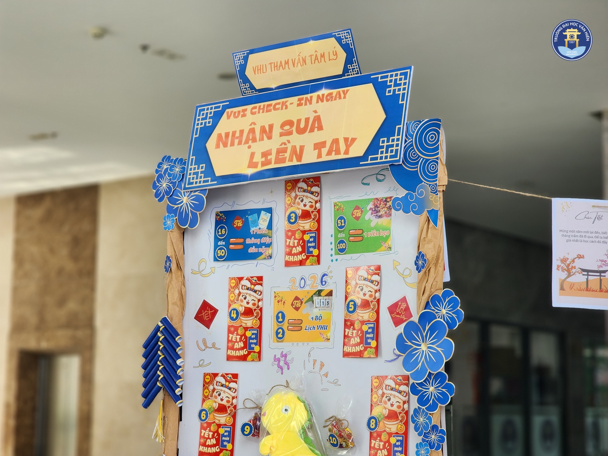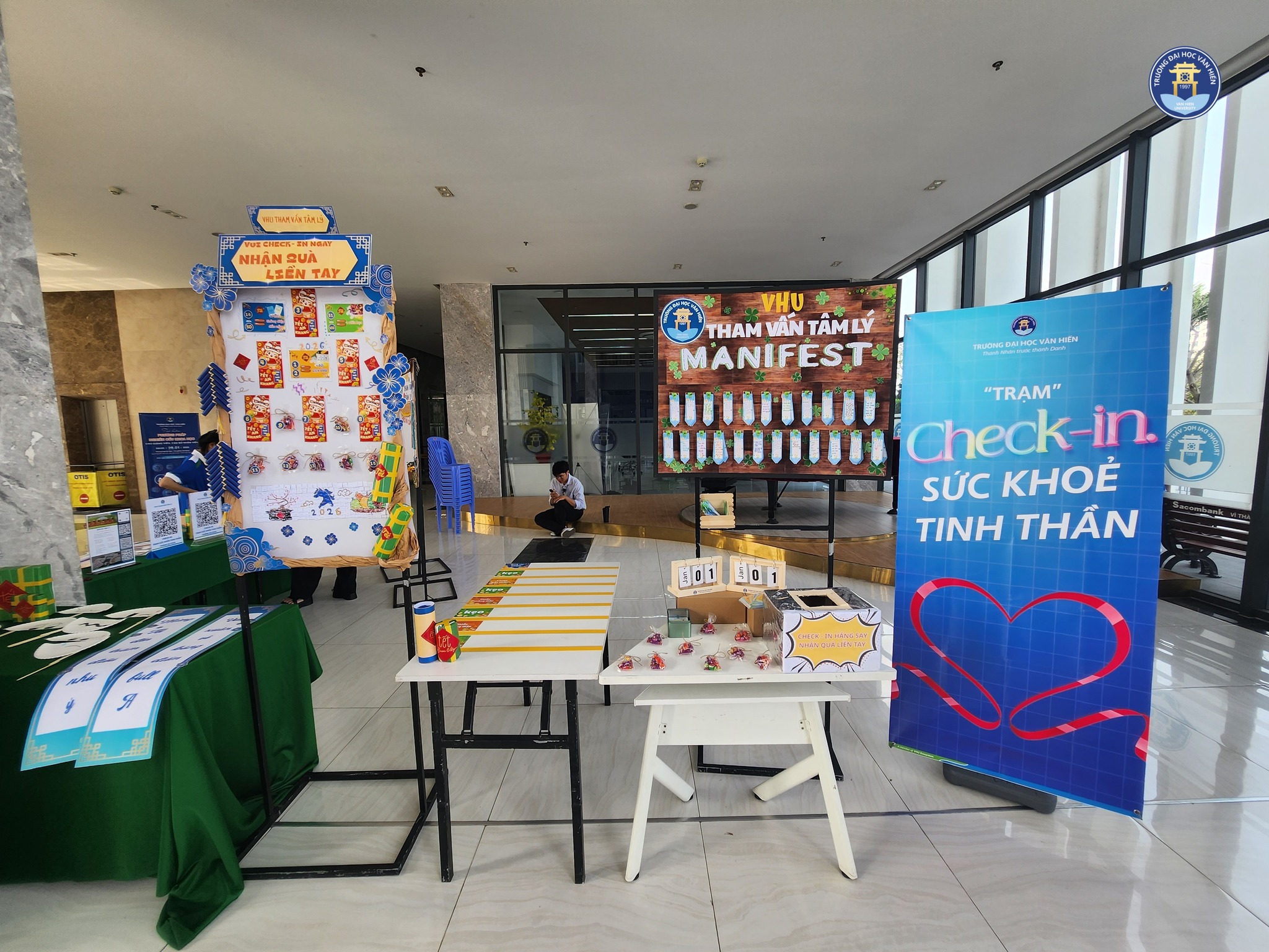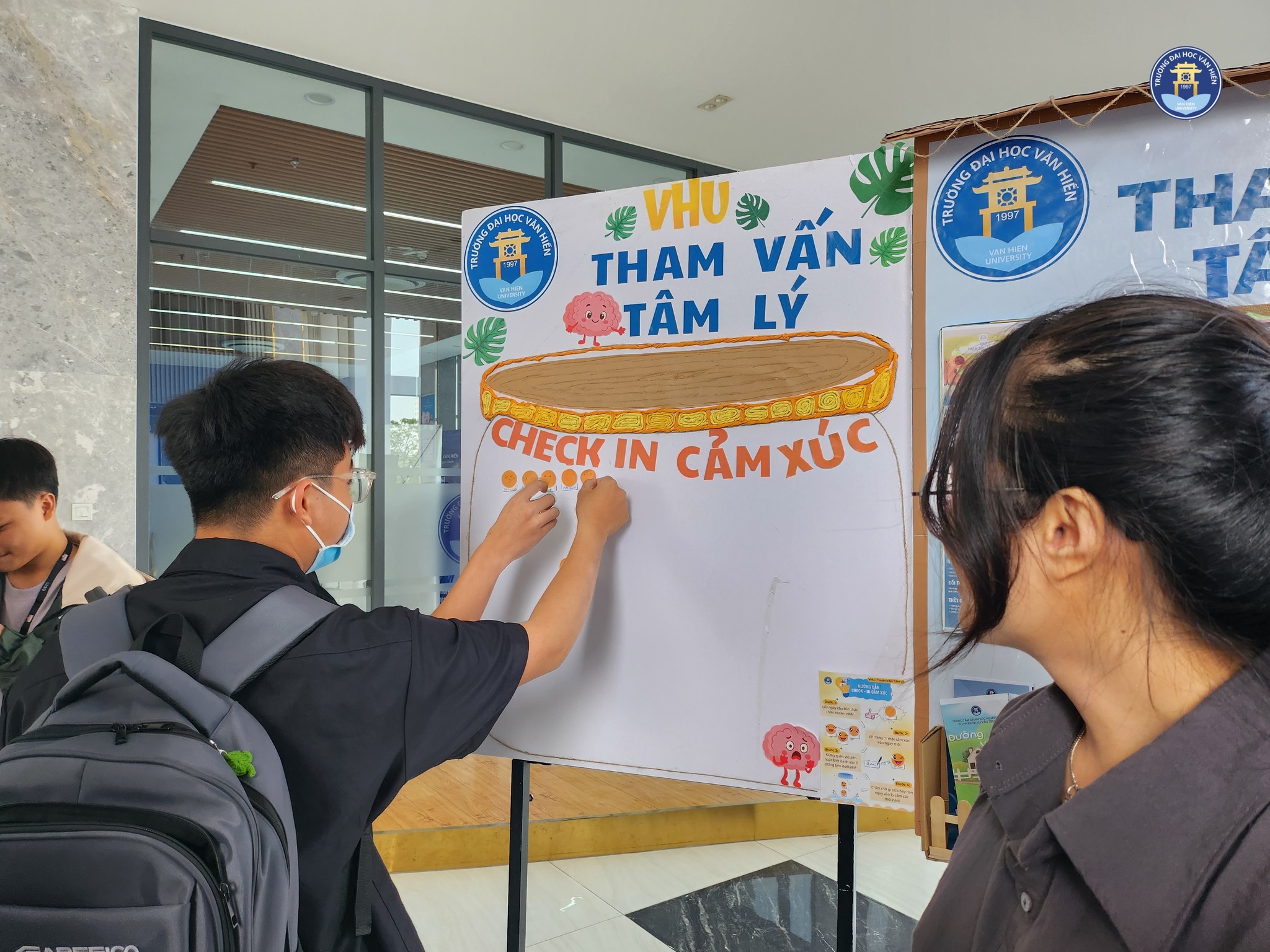 Vừa qua, Trạm Check-in Sức khỏe tinh thần do Bộ phận Tham vấn Tâm lý – Trung tâm Chăm sóc Người học triển khai tại Sảnh Trống Đồng (HEC) đã nhận được sự quan tâm và tham gia hơn 400 sinh viên Văn Hiến từ các Khoa và niên khóa khác nhau.
